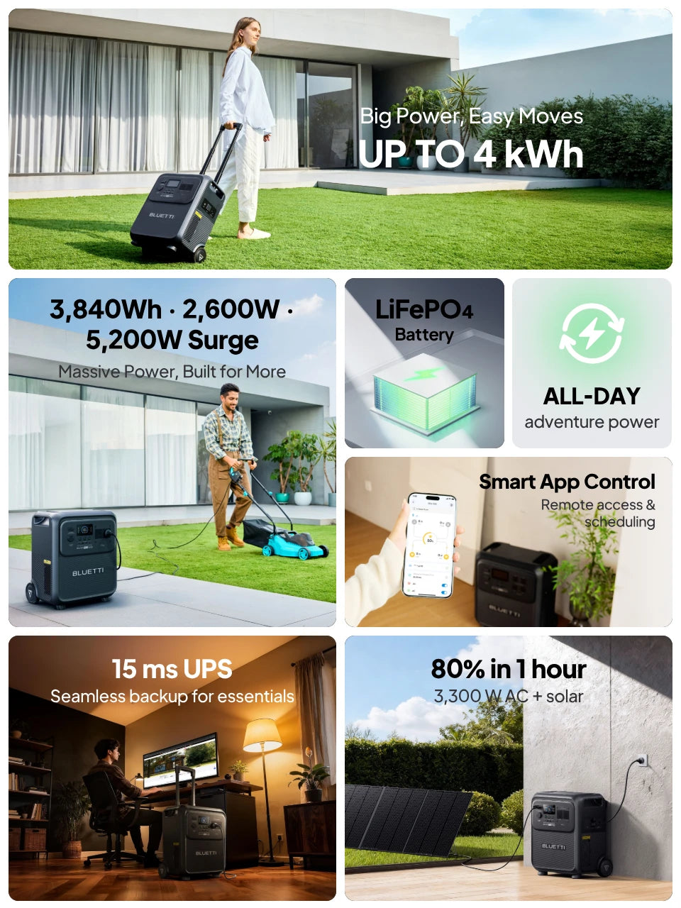 Leading the evolution of power. At the heart of BLUETTI lies a commitment to innovation. Our cutting-edge technology integrates seamlessly to deliver unparalleled stability, efficiency, and simplicity. A smarter, more sustainable world is coming, all powered by BLUETTI.