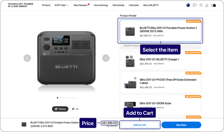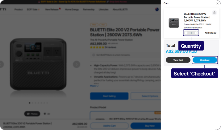 Below, you will find the shopping procedure for the official BLUETTI website.