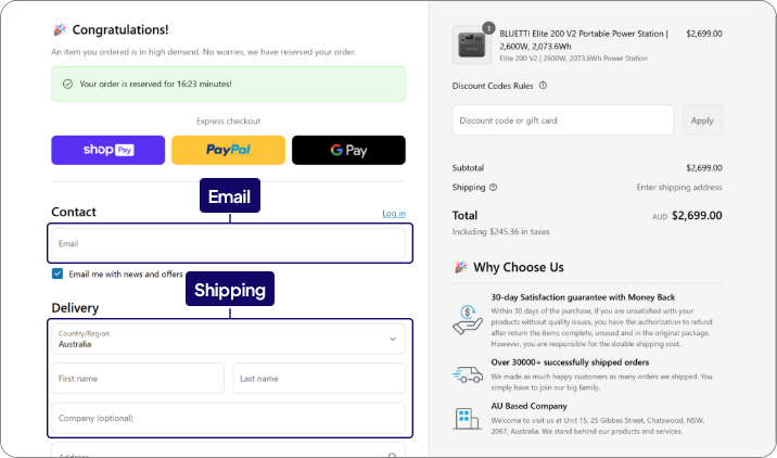 3.Once your payment is complete, please double-check your order details. For any questions, contact us at sale-au@bluettipower.com.