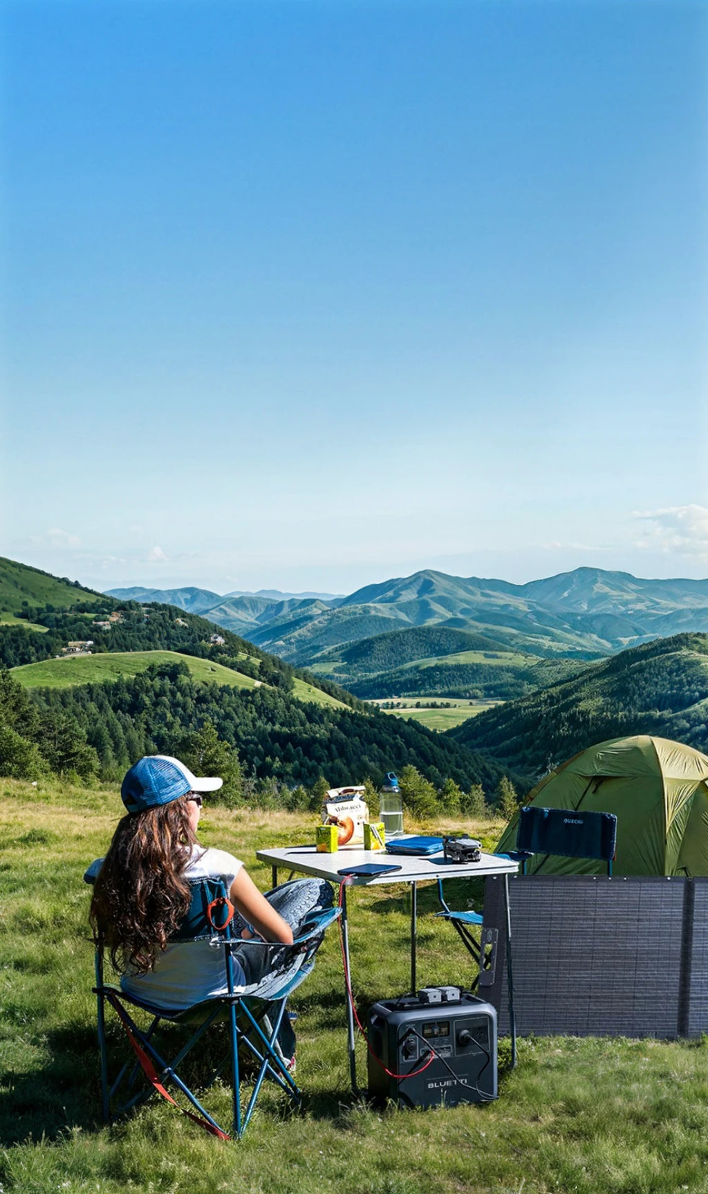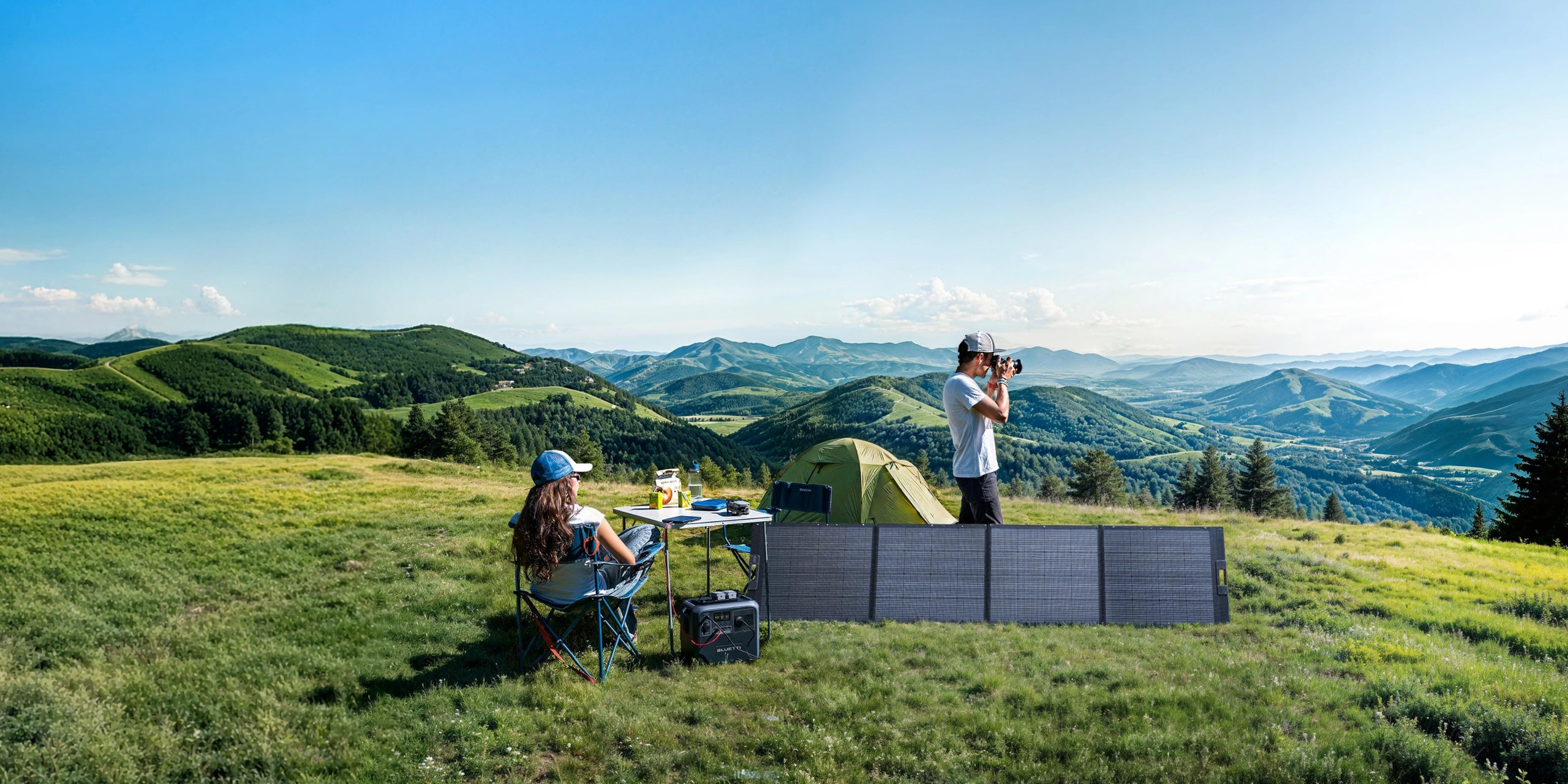 A solar generator is a system that combines a solar panel and a portable power station. It captures sunlight, stores the energy in a battery, and powers your devices — anywhere, anytime, without gas, noise, or pollution.