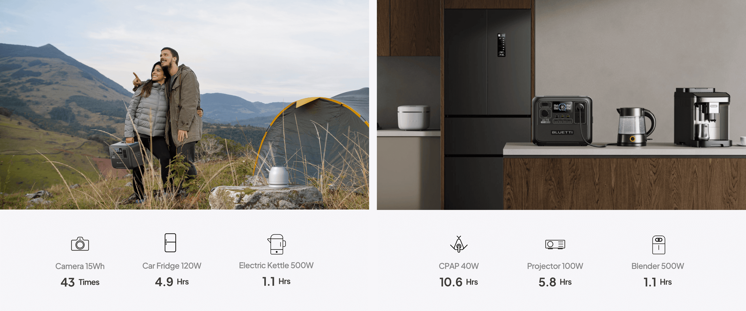 Enable the Power Lifting Mode* in the BLUETTI App, you can power your energy-intensive devices with ease, such as hairdryers, electric kettles, electric blankets, heaters, etc.