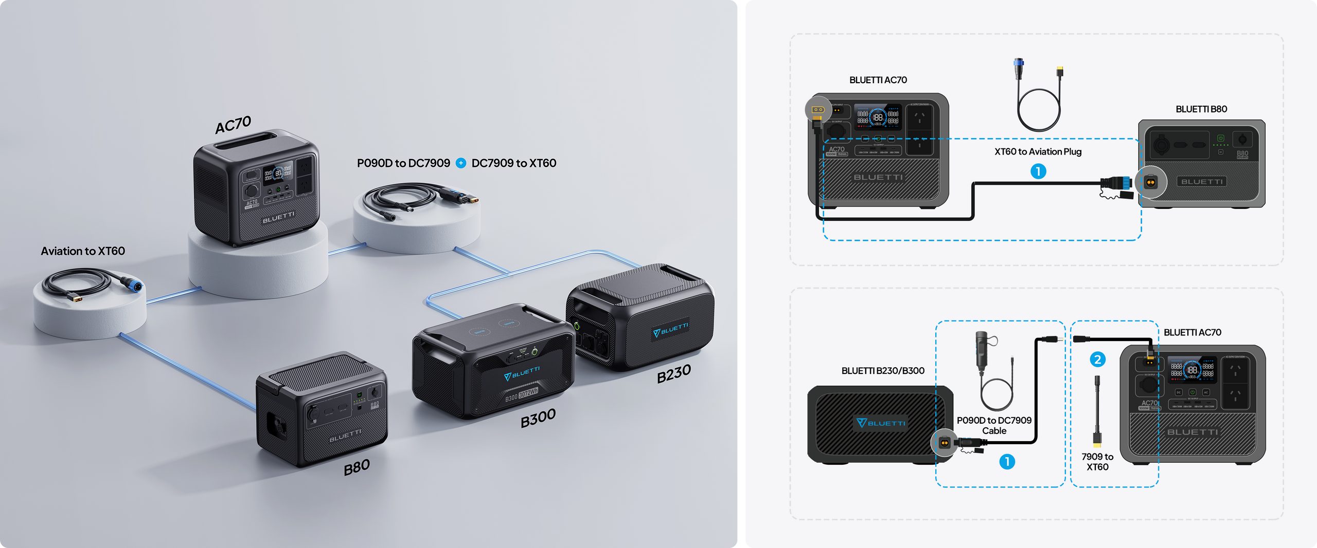 AC70: 1 x BLUETTI PV350 or 2 x BLUETTI MP200