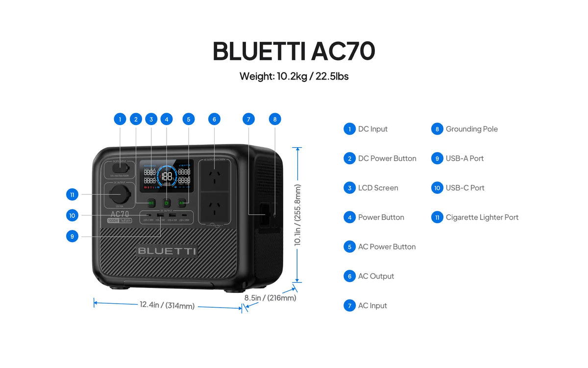 BLUETTI AC70 Portable Power Station | 1,000W 768Wh
