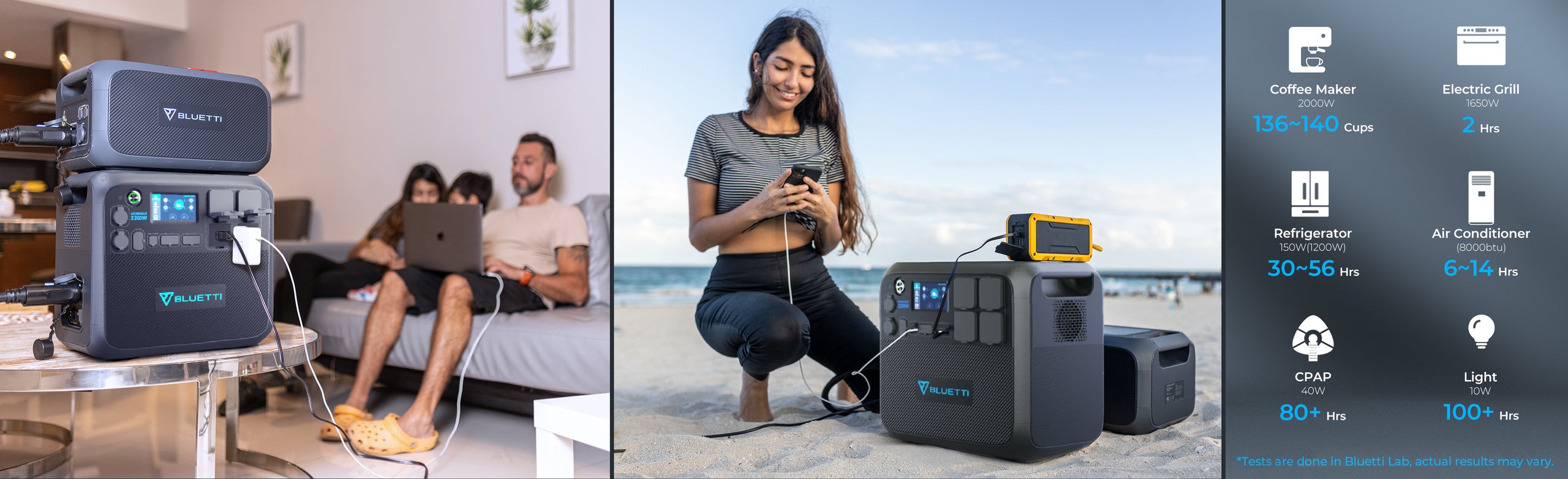 - 2. Dual Adapters(1000W in total): 3~3.5hrs