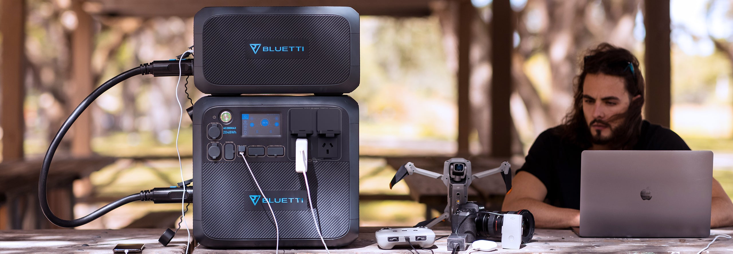 It’s here: The first modular, expandable Bluetti power station. Packed with an astonishing 2048Wh ultra-durable LFP cells and a 2,200W full power pure sine wave inverter, the AC200MAX can be your mobile recharge center off-the-grid or on the way.