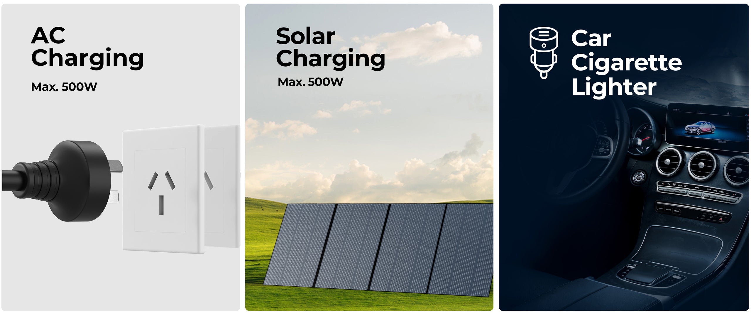 A:1,000W (AC + Solar) with optional D050S DC Charging Enhancer*