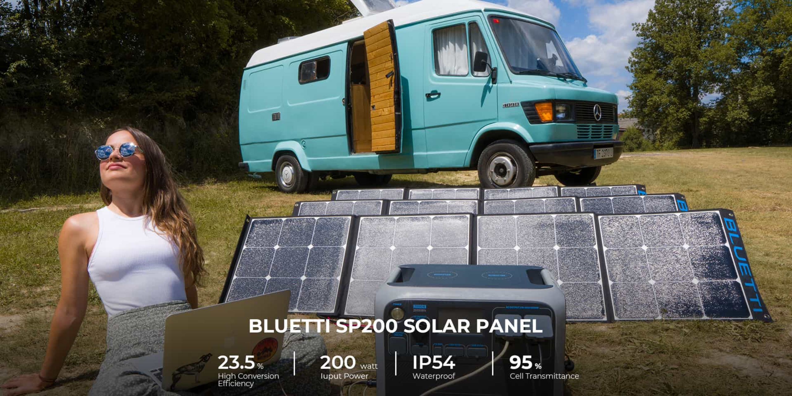 3pcs BLUETTI 200W solar panels can quickly charge the BLUETTI AC200Max within 4.4-5hrs by connecting them in series.