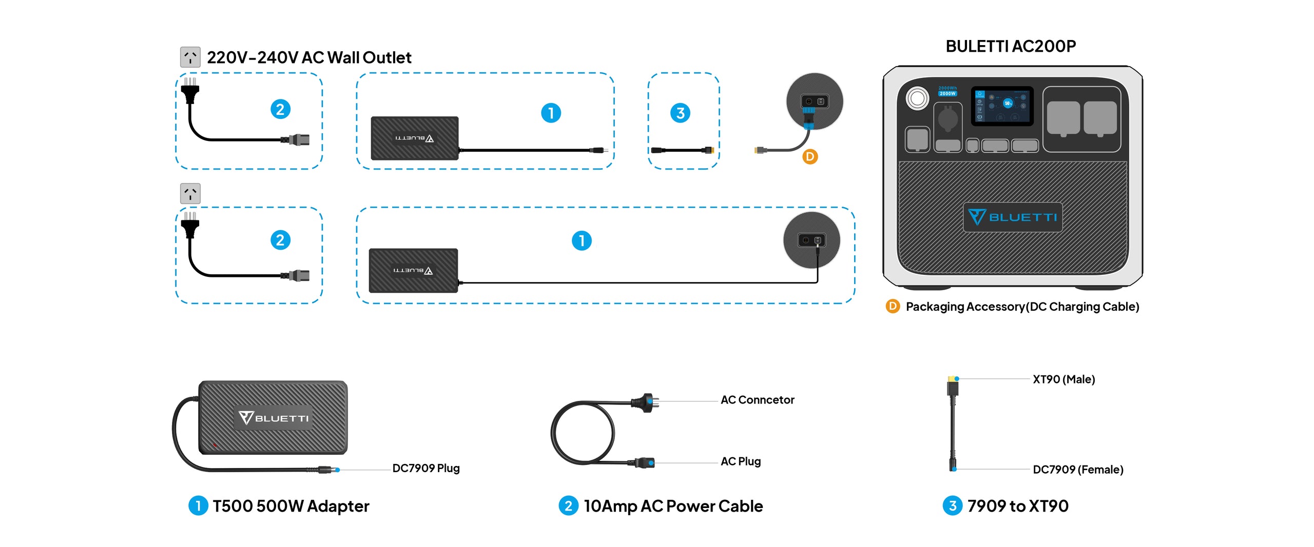Had problems changing my AC200Max after keeping it in humid conditions I guess, it wasn't charging on AC, randomly showing 100% or 0% on the display. Using this adapter I was able to connect the DC input to the normal AC power socket, now the battery would shut down and restart continuously. I forced the power button to stay off with a small tube against the wall and battery charged 100%, now it charges on AC as well. Still getting alarms sometimes and showing 100% when is actually empty, so it won't charge on AC and would shut down if trying to output power, but this failure seems to happen only occasionally now. When it does this, the trick with this DC adapter and forcing the power button to stay off works. Hope this will help someone.